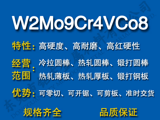 銘東金屬W2Mo9Cr4VCo8高碳含鈷超硬型高速鋼,主要用于高硬度、高耐磨、高韌性精密耐磨五金冷沖模,也可用于切割工具。熱處理后硬度高,可達(dá)67~70HRC,熱硬性好,高溫硬度高,刀刃鋒利,用該鋼制造的切削工具,可以切削鐵基高溫合金、鑄造高溫合金、鈦合金和超高強(qiáng)度鋼等難加工材料,均可得到良好的效果,但韌性稍差,淬火時(shí)溫度應(yīng)采用下限。由于可磨削性能好,所以可用來制造各種高精度復(fù)雜刀具。