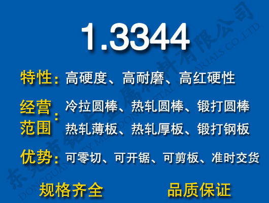銘東金屬1.3344是高碳鉬系高釩型高速鋼,該鋼是在1.3344的基礎(chǔ)上提高含碳量和含釩量,其主要性能(表面硬度、高溫硬度、耐磨性、耐熱性)均有所提高。該鋼具有碳化物細(xì)小均勻、韌性高、熱塑性好等優(yōu)點(diǎn)。它是含有多種合金元素的高合金鋼,屬萊氏體型鋼種。具有高硬度、高耐磨性、高熱硬性、高淬透性和足夠的塑性和韌性,并有良好的鑄、鍛、焊和機(jī)械加工性能,因而它在工具鋼中占有及重要的地位。