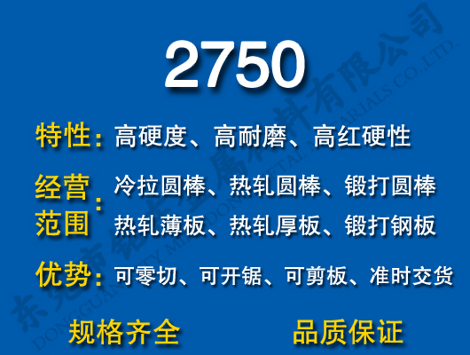 1、2750是常用的鎢系高速鋼的一種,它屬于萊氏體鋼,是高速鋼應(yīng)用最長久的一種。和其它高速鋼一樣,常被稱為“白鋼”、“鋒鋼”或“風鋼”(空冷即可淬火)。