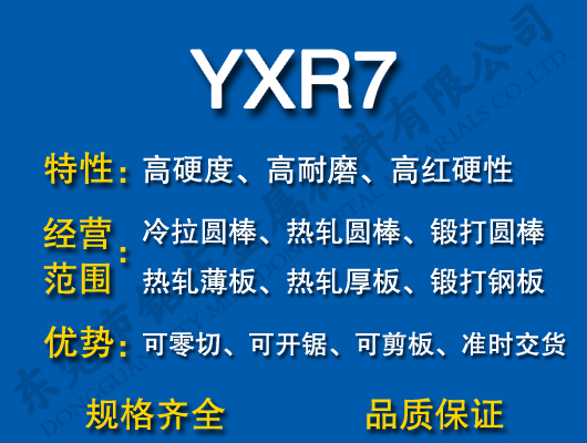 銘東金屬YXR7它是一種成分復(fù)雜的合金鋼,含有鎢、鉬、鉻、釩等碳化物形成元素。YXR7高速工具鋼硬度高,宜于制造強(qiáng)力切割用耐磨、耐沖擊各種工具,宜于制造強(qiáng)力切割用耐磨沖擊各種工具,高級(jí)沖模,螺絲模,較需軔性及形狀繁雜工具,銑刀,鉆頭等。