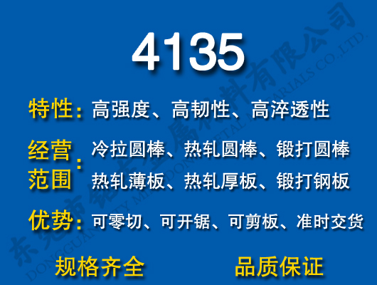 4135合金鋼簡(jiǎn)介: 銘東金屬4135鋼屬于超高強(qiáng)度鋼,具有高強(qiáng)度和韌性,淬透性也較好,無(wú)明顯的回火脆性,調(diào)質(zhì)處理后有較高的疲勞極限和抗多次沖擊能力,低溫沖擊韌性良好。該鋼適宜制造要求一定強(qiáng)度和韌性的大、中型塑料模具,通常將調(diào)質(zhì)后表面淬火作為熱處理方案。 4135合金鋼化學(xué)成份: 碳 C :0.33~0.38% 硅 Si:0.15~0.35% 錳 Mn:0.70~0.90% 硫 S :≤0.040% 磷 P :≤0.035% 鉻 Cr:0.80~1.10% 鉬 Mo:0.15~0.25% 4135合金鋼適用范圍: 4135通常用作調(diào)質(zhì)件,也可在高、中頻表面淬火或淬火、低溫回火后使用,用于高負(fù)荷下工作的重要結(jié)構(gòu)件,特別是受沖擊、振動(dòng)、彎曲、扭轉(zhuǎn)負(fù)荷的機(jī)件,如車(chē)軸、發(fā)動(dòng)機(jī)傳動(dòng)機(jī)件、大電機(jī)軸、汽輪發(fā)電機(jī)主軸、軋鋼機(jī)人字齒輪、曲軸、錘桿、連桿、緊固件以及石油,工業(yè)的穿孔器等;在鍋爐制造業(yè)上用作工作溫度400℃以下的螺栓,510℃以下螺母;在化工設(shè)備中用于非腐蝕介質(zhì)中工作的、工作溫度在400~510℃的無(wú)縫高壓導(dǎo)管。也可替代4340鋼制作大截面齒輪和高負(fù)荷傳動(dòng)軸、汽輪發(fā)電機(jī)轉(zhuǎn)子、直徑小于500mm的支承軸等。 4135合金鋼力學(xué)性能: 密度ρ(kg/m3):約7850 抗拉強(qiáng)度σb (MPa):≥980 屈服強(qiáng)度 σs (MPa):≥835 伸長(zhǎng)率 δ5 (%):≥12 斷面收縮率ψ (%):≥45 沖擊功 Akv (J):≥63 硬度 :≤229HBS 試樣尺寸:試樣毛坯尺寸為25mm 4135合金鋼熱處理規(guī)范: 淬火加熱溫度(℃):850℃,油冷; 回火加熱溫度(℃):550℃,水冷、油冷。 交貨狀態(tài):以(正火、退火或高溫回火)或不熱處理狀態(tài)交貨,交貨狀態(tài)應(yīng)在合同中注明。 4135合金鋼交貨規(guī)格: 銘東金屬冷拉4135圓棒交貨規(guī)格:Φ4.0~20.0mm; 銘東金屬熱軋4135圓棒交貨規(guī)格:Φ16~350mm; 銘東金屬熱軋4135鋼板交貨規(guī)格:4.0~200.0mm。 |