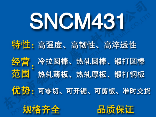 銘東金屬SNCM431是合結(jié)鋼的其中一種,也稱合金鋼,它是在優(yōu)質(zhì)碳素結(jié)構(gòu)鋼的基礎(chǔ)上,適當(dāng)?shù)丶尤胍环N或數(shù)種合金元素(總含量不超過5%)而制成的鋼種。廣泛應(yīng)用于要求韌性好、強度高及大尺寸的重要調(diào)質(zhì)件,如重型機械中承受高載荷的軸類,直徑大于250mm的汽車機軸、葉片,高載荷的傳動件、堅固件、曲軸、齒輪等。