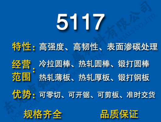 銘東金屬5117是滲碳鋼,滲碳鋼通常為含碳量為0.15%-0.24%的低碳鋼。汽車上多用其制造傳動齒輪,是中淬透性滲碳鋼,其淬透性較高,在保證淬透情況下,特別是具有較高的低溫沖擊韌性。5117適合做表面滲碳硬化處理,具有良好的加工性,加工變形微小,抗疲勞性能相當(dāng)好。廣泛應(yīng)用于軸類,活塞類零配件以及汽車,飛機各種特殊零件部位。
