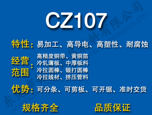 CZ107強(qiáng)度比紫銅高,導(dǎo)電、導(dǎo)熱性好,在大氣和淡水中有較高的耐蝕性,且有良好的塑性,易于冷、熱壓力加工,易于焊接、鍛造和鍍錫,無應(yīng)力腐蝕破裂傾向。常被用于制造閥門、水管、空調(diào)內(nèi)外機(jī)連接管和散熱器等。工業(yè)中采用的黃銅含鋅量不超過45%,含鋅量再高將會產(chǎn)生脆性,使合金性能變壞。為了提高黃銅的耐蝕性、強(qiáng)度、硬度和切削性等,在銅-鋅合金中加入少量(一般為1%~2%,少數(shù)達(dá)3%~4%,極個別的達(dá)5%~6%)錫、鋁、錳、鐵、硅、鎳、鉛等元素,構(gòu)成三元、四元、甚至五元合金,即為復(fù)雜黃銅,亦稱特殊黃銅。