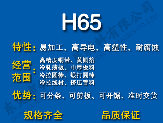 銘東金屬H65黃銅是以鋅為主要合金元素的銅基合金,因常呈金黃色而得名。較簡(jiǎn)單的黃銅是銅——鋅二元合金,稱為簡(jiǎn)單黃銅或普通黃銅。改變黃銅中鋅的含量可以得到不同機(jī)械性能的黃銅。黃銅中鋅的含量越高,其強(qiáng)度也較高,塑性稍低。H65黃銅色澤美觀,有良好的工藝和力學(xué)性能,導(dǎo)電性和導(dǎo)熱性較高,在大氣、淡水和海水中耐腐蝕,易切削和拋光,焊接性好且價(jià)格便宜。常用于制作導(dǎo)電、導(dǎo)熱元件,耐蝕結(jié)構(gòu)件,彈性元件,日用五金及裝飾材料等。