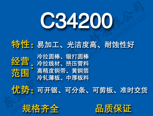 銘東金屬C34200鉛黃銅圓棒規(guī)格:Φ1.0-200mm;