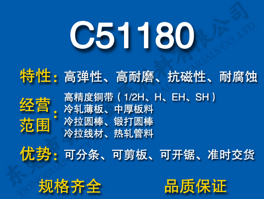 C51180磷青銅簡介: 銘東金屬C51180磷青銅是一種高品質合金銅,強度高,彈性和耐磨性好,抗腐蝕性好,易焊接和釬焊,同時具有良好的導電性能,不易發(fā)熱、確保安全同時具備很強的抗疲勞性。主要用作耐磨零件和彈性元件,如電腦連接器、手機連接器、高科技行業(yè)接插件、電子電氣用彈簧、開關、電子產品的插槽、按鍵、電氣連接件、引線框架、振動片及端子等。 C51180磷青銅化學成分: 錫 Sn :3.50~4.90% 鋅 Zn:≤0.30% 鐵 Fe:0.05~0.20% 鉛 Pb:≤0.05% 鎳 Ni:0.05~0.20% 磷 P:0.01~0.35% Cu+Sn+P:≥99.5% C51180磷青銅的特性及適用范圍: 含磷錫青銅具有良好的力學性能和導電性能,廣泛用于制作彈簧和導電性好的彈簧接觸片,精密儀器中的耐磨零件和抗磁零件,如齒輪、電刷盒、振動片、接觸器、抗磨墊圈、軸承、軸套、渦輪等。錫磷青銅在大氣、海水、淡水和蒸汽中十分耐蝕,廣泛用于蒸汽鍋爐和海船零件。錫磷青銅是鑄造收縮率最小的有色金屬合金,用來生產形狀復雜、輪廓清晰、氣密性要求不高的鑄件。 C51180磷青銅產品的優(yōu)勢: 磷青銅有更高的耐蝕性,耐磨損,沖擊時不發(fā)生火花。用于中速、重載荷軸承,工作最高溫度250℃。具有自動調心,對偏斜不敏感,軸承受力均勻承載力高,可同時受徑向載荷,自潤滑無需維護等優(yōu)勢。錫磷青銅的插孔簧片硬連線電氣結構,無鉚釘連接或無摩擦觸點,可保證接觸良好,彈力好,撥插平穩(wěn),具有優(yōu)良機械加工性能及成屑性能,可迅速縮短零件加工時間。 C51180磷青銅交貨規(guī)格: 銘東金屬C51180磷青銅帶材規(guī)格:T0.05-1.2mm; 銘東金屬C51180磷青銅板料規(guī)格:T0.5-100mm; 銘東金屬C51180磷青銅圓棒規(guī)格:Φ2.0-200mm; 銘東金屬C51180磷青銅線材規(guī)格:Φ0.1-3.0mm。 |