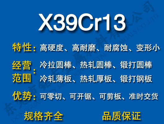 X39Cr13不銹鋼簡介: 銘東金屬X39Cr13不銹鋼是一種優(yōu)質(zhì)馬氏體型不銹鋼,該鋼機(jī)械加工性能良好,因含碳較高,經(jīng)淬火回火處理后硬度較高,具有優(yōu)良的耐磨性、抗腐蝕性、較高的強(qiáng)度等特點(diǎn)。X39Cr13廣泛適用于制造耐大氣、水蒸氣、水及氧化性酸腐蝕的各類精密機(jī)械、軸承、電氣、設(shè)備、儀器、儀表、汽輪機(jī)葉片、彈簧、刃具、噴嘴,閥座、閥門軸承、醫(yī)療器械等。 X39Cr13不銹鋼化學(xué)成分: 碳 C:0.36~0.42% 硅 Si:≤1.00% 錳 Mn:≤1.00% 鉻 Cr:12.50~14.50% 磷 P:≤0.040% 硫 S:≤0.015% X39Cr13不銹鋼力學(xué)性能: 抗拉強(qiáng)度 σb (MPa):淬火回火,≥736; 條件屈服強(qiáng)度 σ0.2 (MPa):淬火回火,≥540; 伸長率 δ5 (%):淬火回火,≥12; 斷面收縮率 ψ (%):淬火回火,≥40; 沖擊功 Akv (J):淬火回火,≥29.4; 硬度 :退火,≤235HB;淬火回火,≥217HB。 X39Cr13不銹鋼熱處理規(guī)范及金相組織: 熱處理規(guī)范: 退火,800~900℃慢冷或約750℃空冷; 淬火,920~980℃油冷; 回火,600~750℃急冷。 金相組織:組織特征為馬氏體型。 交貨狀態(tài):一般以熱處理狀態(tài)交貨,其熱處理種類在合同中注明;未注明者,按不熱處理狀態(tài)交貨。 X39Cr13不銹鋼交貨規(guī)格: 銘東金屬X39Cr13磨光圓棒規(guī)格:Φ2.0-130mm; 銘東金屬X39Cr13熱軋圓棒規(guī)格:Φ16-300mm; 銘東金屬X39Cr13冷軋鋼板規(guī)格:0.8-3.0mm; 銘東金屬X39Cr13熱軋鋼板規(guī)格:3.0-200mm。 |