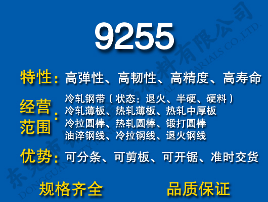 銘東金屬9255彈簧鋼是應(yīng)用廣泛的硅錳彈簧鋼,強度、彈性和淬透性較9254稍高。硅和錳可以提高彈性極限和屈強比,提高淬透性、抗回火穩(wěn)定性和抗松弛穩(wěn)定性,過熱敏感性比錳鋼低,該鋼整體性能優(yōu)于各類碳素彈簧鋼。9255廣泛應(yīng)用用于車輛、拖拉機工業(yè)上制作負荷較重、應(yīng)力較大的板簧和直徑較大的螺旋彈簧等。