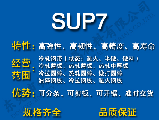 SUP7熱處理方法:有等溫回火和分級淬火、亞溫淬火及高溫回火、形變熱處理的工藝方法。使用該方法能有效地提高SUP7彈簧鋼的強韌性和使用壽命。
