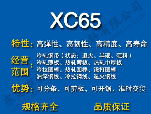 XC65彈簧鋼具有優(yōu)良的綜合性能,如力學(xué)性能(特別是彈性極限、強(qiáng)度極限、屈強(qiáng)比)、抗彈減性能(即抗彈性減退性能,又稱抗松弛性能)、疲勞性能、淬透性、物理化學(xué)性能(耐熱、耐低溫、抗氧化、耐腐蝕等)。主要用于制作較小尺寸各種扁、圓彈簧、座墊彈簧、彈簧發(fā)條,如調(diào)壓調(diào)速?gòu)椈、柱塞彈簧、測(cè)力彈簧,也可制作彈簧環(huán)、氣門簧、離合器簧片、剎車彈簧、冷拔鋼絲冷卷螺旋彈簧以及制造一般機(jī)械中的軸、軋 輥、偏心軸等。