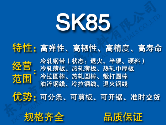 SK85彈簧鋼簡(jiǎn)介: 銘東金屬SK85屬于高精度碳素彈簧鋼,具有優(yōu)良的冶金質(zhì)量(高的純潔度和均勻性)、良好的表面質(zhì)量(嚴(yán)格控制表面缺陷和脫碳)、精確的外形和尺寸。經(jīng)熱處理或冷拔硬化后,可得到較高的強(qiáng)度、硬度、彈性和適當(dāng)?shù)捻g性、塑性,在相同表面狀態(tài)和完全淬透情況下,疲勞極限不比合金彈簧鋼差。不過(guò)跟合金彈簧鋼相比,SK85鋼淬透性一般,尺寸較小可以采用油淬或者水淬,尺寸較大時(shí)油中淬不透,水淬則變形,開(kāi)裂傾向較大,大截面零件一般采用水淬油冷或正火處理進(jìn)行硬化,所以該鋼廣泛適用于制造較小尺寸的彈簧。 SK85彈簧鋼化學(xué)成分: 碳 C:0.80~0.90% 硅 Si:0.10~0.35% 錳 Mn:0.10~0.50% 磷 P:≤0.030% 硫 S:≤0.030% 鉻 Cr:≤0.30% 鎳 Ni:≤0.25% 銅 Cu:≤0.25% SK85彈簧鋼力學(xué)性能: 密度ρ(kg/m³):約7850; 抗拉強(qiáng)度σb (MPa):≥1130; 屈服強(qiáng)度 σs (MPa):≥980; 伸長(zhǎng)率 δ5 (%):≥6; 斷面收縮率ψ (%):≥30; 布氏硬度(HBS10/3000)(退火狀態(tài)):≦302(未熱處理),≦255(退火); 試樣尺寸:試樣毛坯尺寸為25mm SK85彈簧鋼特性及適用范圍: SK85彈簧鋼具有優(yōu)良的綜合性能,如力學(xué)性能(特別是彈性極限、強(qiáng)度極限、屈強(qiáng)比)、抗彈減性能(即抗彈性減退性能,又稱(chēng)抗松弛性能)、疲勞性能、淬透性、物理化學(xué)性能(耐熱、耐低溫、抗氧化、耐腐蝕等)。主要用于制作較小尺寸各種扁、圓彈簧、座墊彈簧、彈簧發(fā)條,如調(diào)壓調(diào)速?gòu)椈、柱塞彈簧、測(cè)力彈簧,也可制作彈簧環(huán)、氣門(mén)簧、離合器簧片、剎車(chē)彈簧、冷拔鋼絲冷卷螺旋彈簧以及制造一般機(jī)械中的軸、軋 輥、偏心軸等。 SK85彈簧鋼熱處理規(guī)范及交貨狀態(tài): 熱處理規(guī)范:淬火830℃±20℃,油冷;回火540℃±50℃(特殊需要時(shí),±30℃); 金相組織:屈氏體; 臨界點(diǎn)溫度(近似值)Ac1=726℃,Ac3=765℃,Ar3=741℃,Ar1=689℃,Ms=270℃; 正火規(guī)范:溫度810±10℃,空氣冷卻; 交貨狀態(tài):熱軋鋼材以熱處理或不熱處理狀態(tài)交貨,冷軋鋼材以熱處理或退火狀態(tài)交貨,冷拉鋼材以不熱處理或退火狀態(tài)交貨。 SK85彈簧鋼交貨規(guī)格: 銘東金屬SK85冷軋鋼帶交貨規(guī)格:0.15~2.0mm; 銘東金屬SK85冷軋鋼板交貨規(guī)格:1.0~4.0mm; 銘東金屬SK85熱軋鋼板交貨規(guī)格:3.0~20.0mm; 銘東金屬SK85冷拉圓棒交貨規(guī)格:Φ4.0~Φ16.0mm; 銘東金屬SK85熱軋圓棒交貨規(guī)格:Φ16~Φ350mm; 銘東金屬SK85油淬鋼線交貨規(guī)格:Φ1.0~Φ15mm。 |
